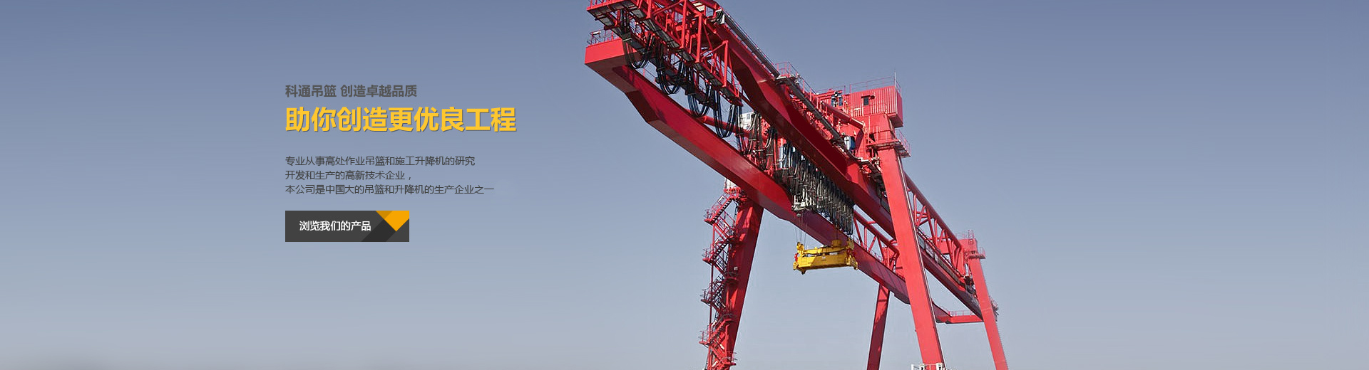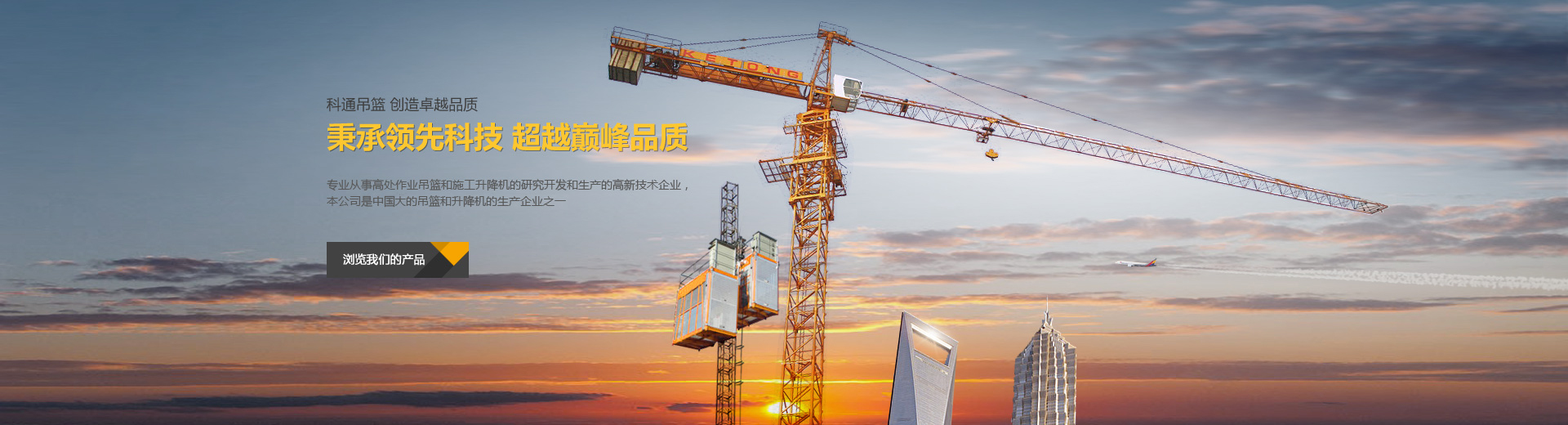 無錫科通工程機械制造有限公司專業主要從事高處作業吊籃和施工升降機的研究開發和生產,是公司本著“創造優良產品,奉獻優良服務”的方針和理念,獲得廣大的客戶的好評。公司擁有先進的生產工藝,精密的工裝設備以及過硬的檢測技術,強大的生產能力,為客戶提供可靠安全的優質產品。